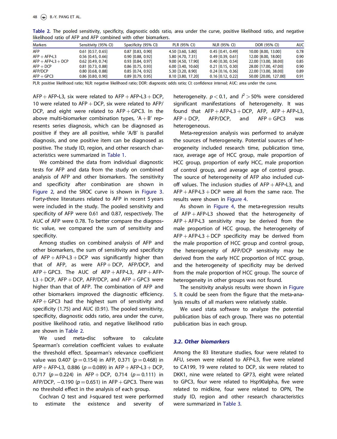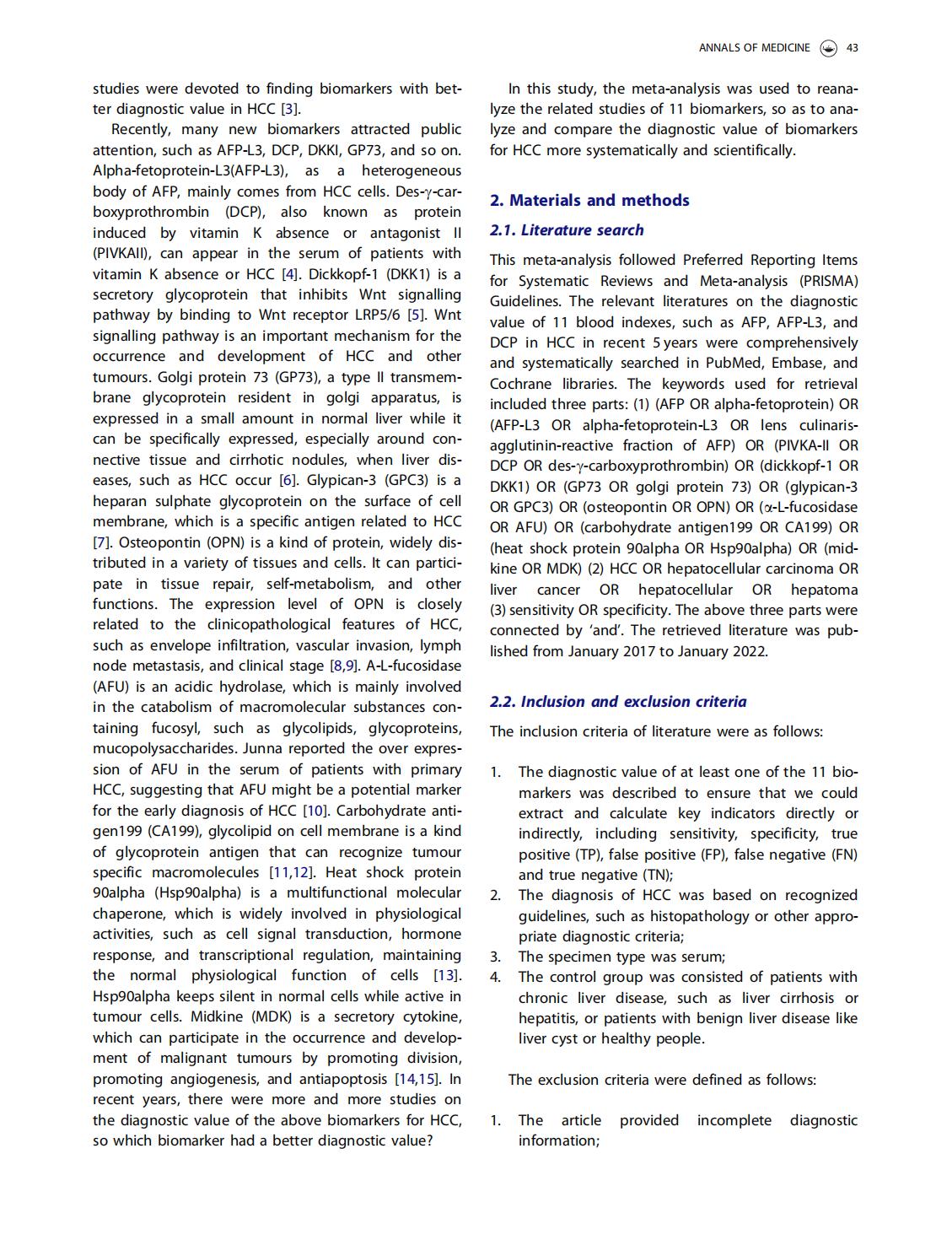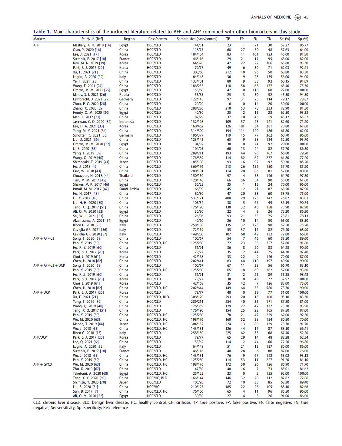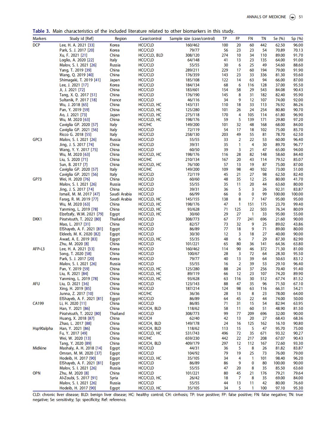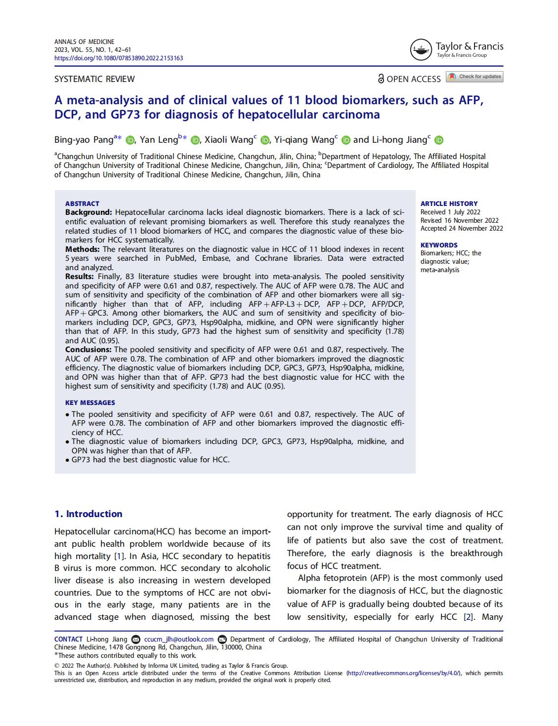 A meta-analysis and of clinical values of 11 blood biomarkers, such as AFP,DCP, and GP73 for diagnosis of hepatocellular carcinoma