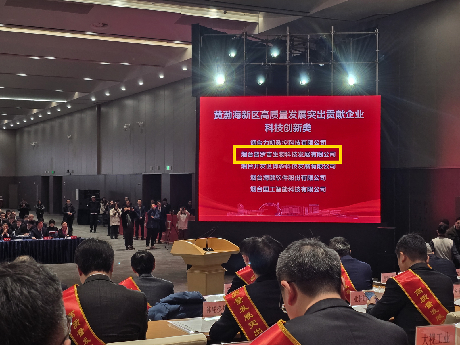 榮耀見證〡普羅吉生物獲評為“2024年煙臺黃渤海新區(qū)高質(zhì)量發(fā)展突出貢獻(xiàn)企業(yè)”